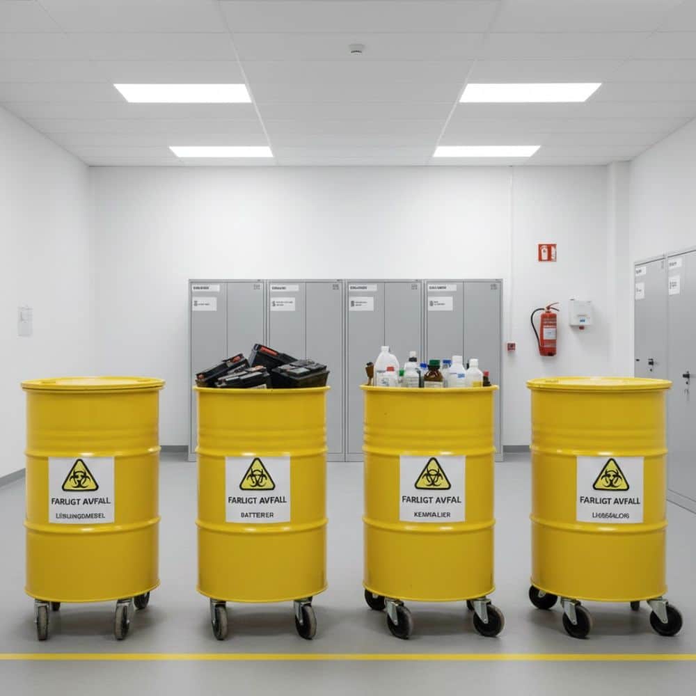 Vårt mål är att minimera miljöpåverkan och säkerställa att farligt avfall aldrig hamnar fel. All hantering sker enligt Naturvårdsverkets riktlinjer och ADR-regler för farligt gods.