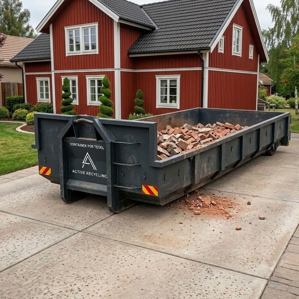 Containrar för tegel används ofta vid rivning av murverk, skorstenar, fasader eller äldre byggnader där stora mängder tegel uppstår.